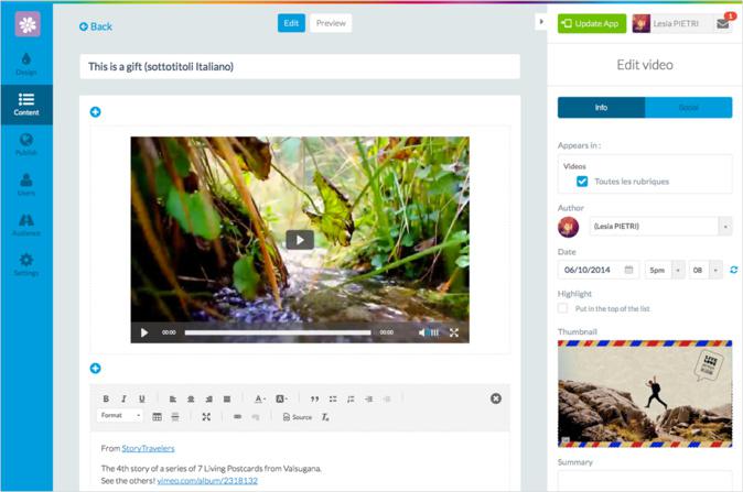 Entonces, además de artículos, videos y fotos, ahora es posible añadir sonidos. Por último, la organización de los contenidos es mucho más flexible. El contenido del CMS se puede asignar a una o más categorías, para poder proporcionar acceso múltiple para el mismo elemento en la app.