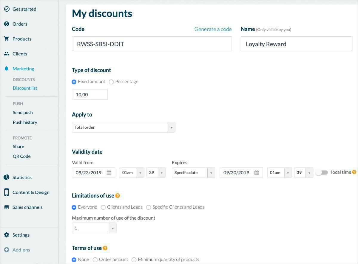 Con la aplicación de compras GoodBarber puede crear descuentos personalizados solo para ellos.