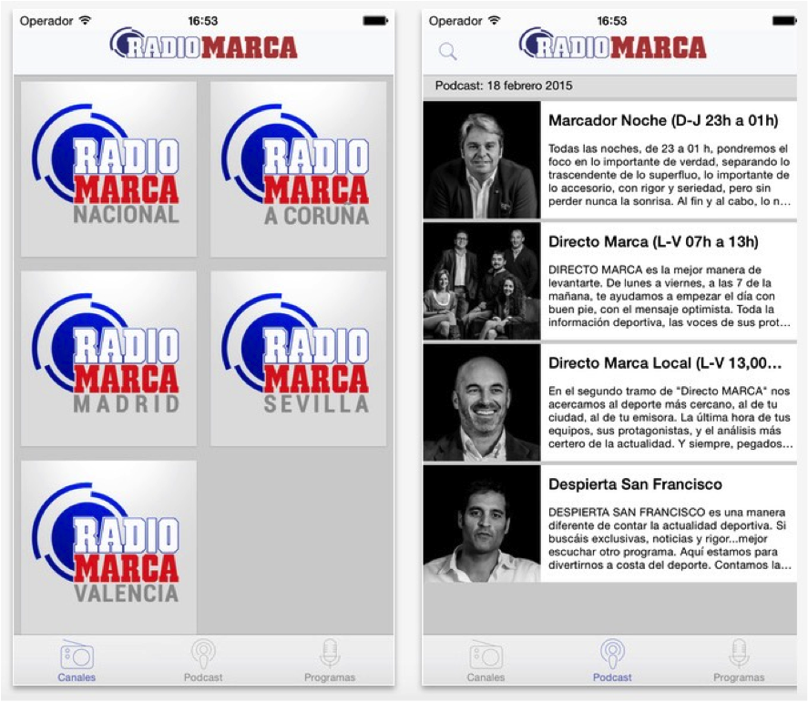 Puedes encontrar RADIO MARCA para iOS y Android gratis.