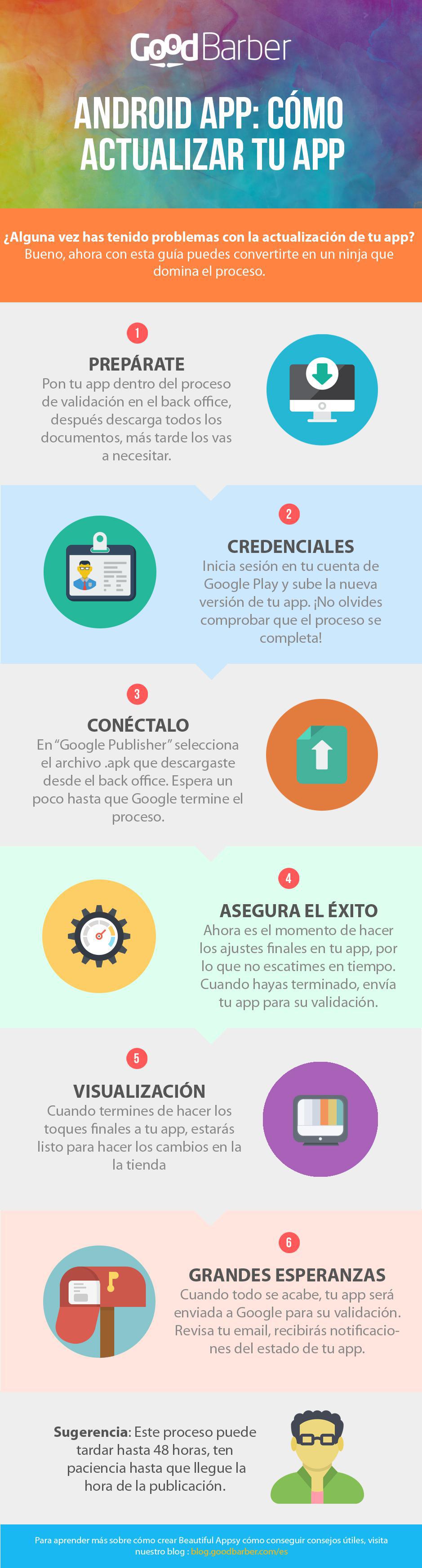 Si bien es relativamente más fácil actualizar la aplicación en Google Play que en la App Store, con esta infográfica que os proponemos desde GoodBarber, escapareis de todas las trampas ;)
