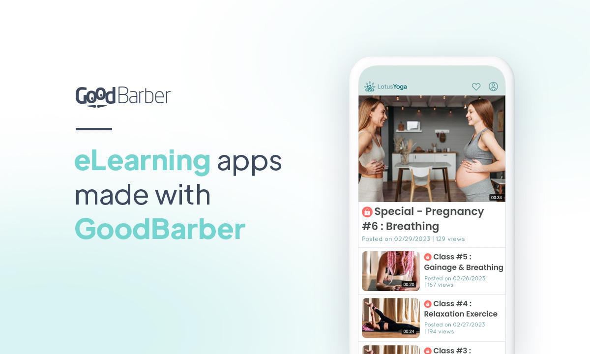 Aunque en el pasado sólo unos pocos tenían acceso a la creación de aplicaciones móviles, la aparición de creadores de aplicaciones sin código, como GoodBarber, ha hecho más accesible el desarrollo de aplicaciones. Esto ha ampliado aún más la oferta de formación en línea y ha facilitado a formadores y entrenadores la creación e implantación de sus propias plataformas de eLearning. De hecho, nuestro creador de aplicaciones permite a las personas diseñar y desplegar aplicaciones educativas con facilidad, aprovechando su interfaz intuitiva y sus plantillas prediseñadas. Esta herramienta permite a los educadores centrarse en la creación de contenidos atractivos en lugar de navegar por complejos aspectos técnicos.