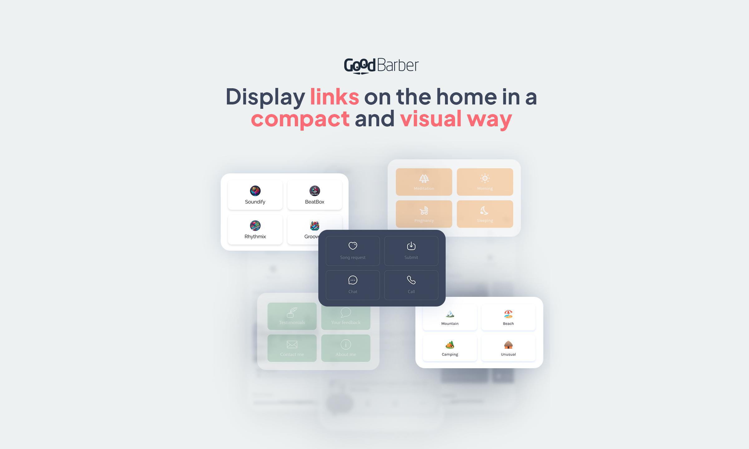 Visual Shortcut destaca por su flexibilidad. Cada celda puede redirigir a una sección, a un enlace externo o lanzar una acción rápida (llamada, SMS, correo electrónico). Puede personalizar la alineación del contenido (centrado o a la izquierda), añadir títulos y subtítulos, y ajustar los colores, márgenes y sombras para reflejar su identidad visual. Compatible con todos los formatos (móvil, tableta o escritorio), este widget ofrece una experiencia de usuario fluida y envolvente.