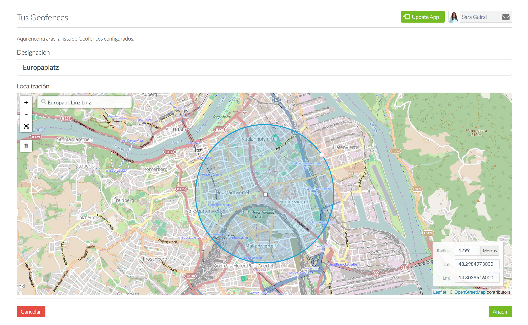 Si no has creado aún ningún Geofence, se te redirigirá automáticamente a la página desde la que se puede crear un Geofence.