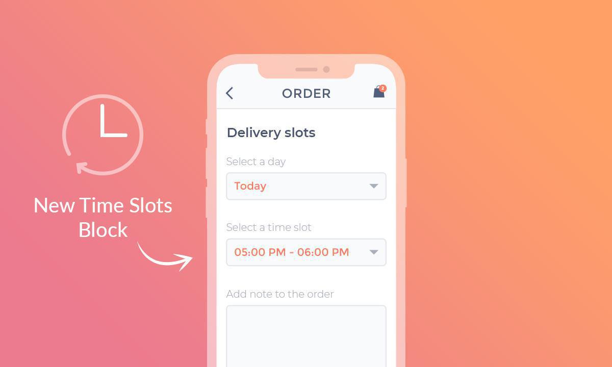 Con nuestro nuevo add-on para espacios de entrega, puedes asegurarte de que tu tienda nunca se vea presionada por demasiados pedidos al mismo tiempo y los pedidos lleguen en el momento adecuado.