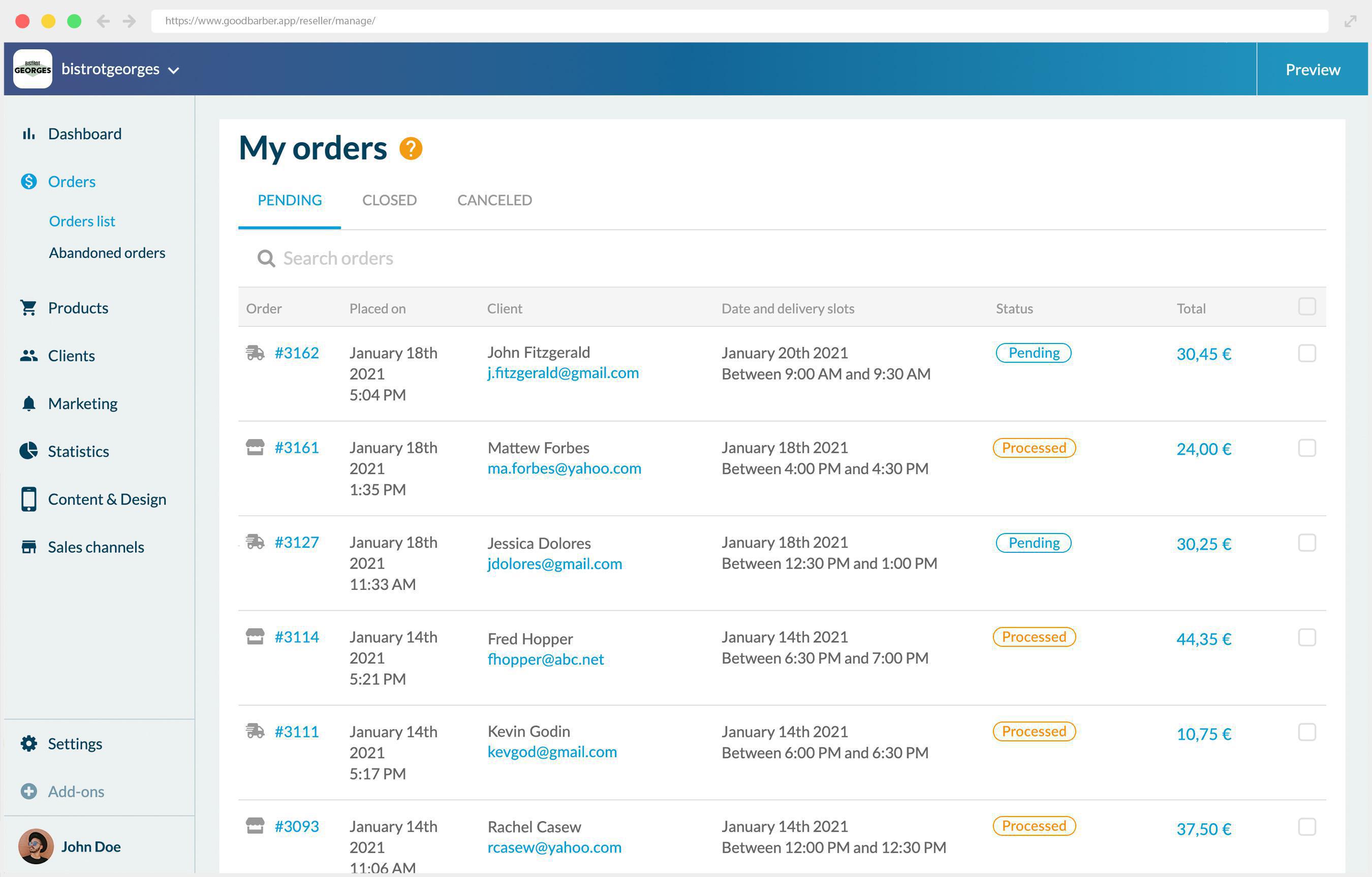 - En la nueva columna "Fecha y franjas horarias de entrega" agregada en el menú Lista de pedidos> Mis pedidos> Pendientes. Toda la información que necesitas saber en una sola lista. Y, por supuesto, estos detalles también están disponibles en la página detallada del pedido.