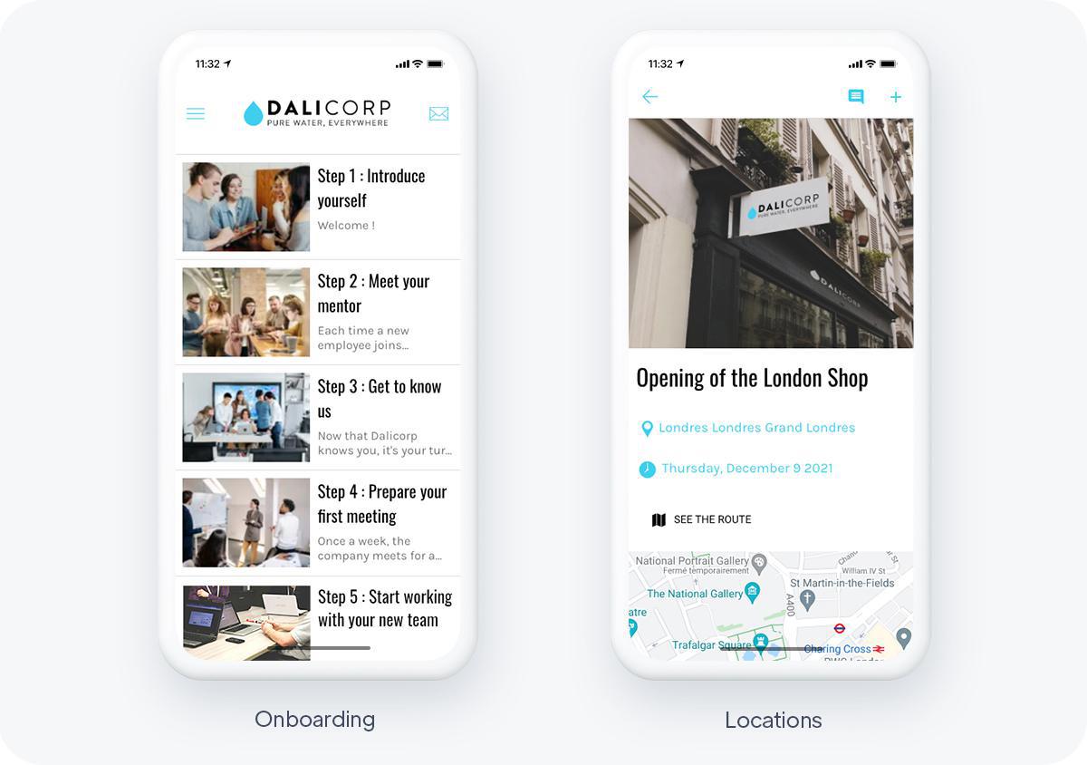 Dalicorp es la aplicación de Comunicación Interna de una empresa innovadora especializada en la distribución de botellas de agua, trabajando en un enfoque eco-responsable y más respetuoso con el planeta. Los objetivos de esta aplicación son claros: informar, vincular e involucrar a los empleados.