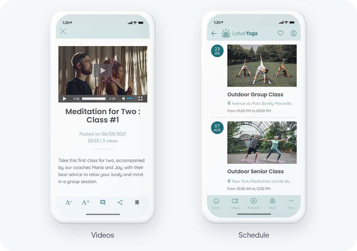 Al igual que FastPiano, LotusYoga utiliza diferentes tipos de contenido para variar sus métodos de aprendizaje. Es el formato de video que se prefiere y se destaca en el Inicio de la aplicación. Es el contenido más adecuado ya que es posible hacer una sesión al mismo tiempo que los entrenadores. Además, los videos están organizadossegún las necesidades de los usuarios, hay por ejemplo una sección dedicada a las mujeres embarazadas, un target más específico. También hay algunos artículos y podcasts adicionales para sesiones realmente completas.