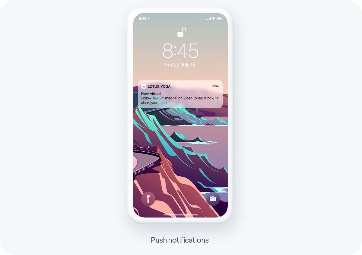 Desde tu back office de GoodBarber, es posible programar notificaciones automáticas para que se envíen cada vez que se agregue contenido nuevo a cualquier sección de tu aplicación. Ideal para informar automáticamente a tus usuarios de nuevas lecciones disponibles o tutoriales en vivo. También se pueden segmentar según grupos de usuarios, lo que te permite adaptar tu estrategia a cada perfil. Es una característica motivadora que genera lealtad y les recuerda a tus usuarios que regresen a tu aplicación.