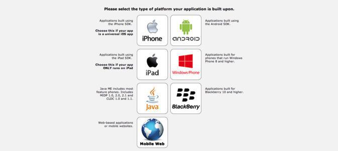Selecciona la plataforma de tu aplicación. Si tu aplicación está disponible para múltiples plataformas, comienza con una y luego repite el mismo procedimiento para la otra.