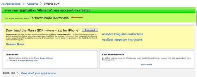 Una vez hecho esto, se te redirigirá al sitio Flurry, donde tu aplicación ya estará lista.