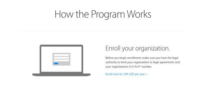 Para distribuir su aplicación iOS fuera de la App Store, primero debe abrir una cuenta de Apple Developer Enterprise.