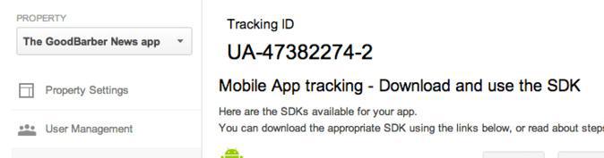 En este momento, Google te sugerirá que descargues el Google Analytics SDK para iOS y Android para añadirlos a tu aplicación.
