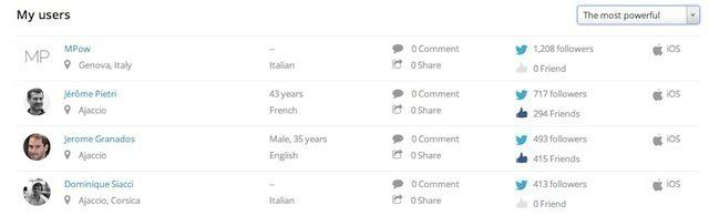En la lista de usuarios proporcionada en el menú Usuarios> Mis usuarios> Lista, puedes visualizar los inicios de sesión más recientes, registros y descubrir cómo se comportan tus usuarios dentro de la app. ¿Comparten contenido o sólo lo leen? Además, también puedes saber cuántos seguidores tienen en Twitter y Facebook. Idea que puedes utilizar para identificar los potenciales influencers interesados en tu app y convertirlos en embajadores.