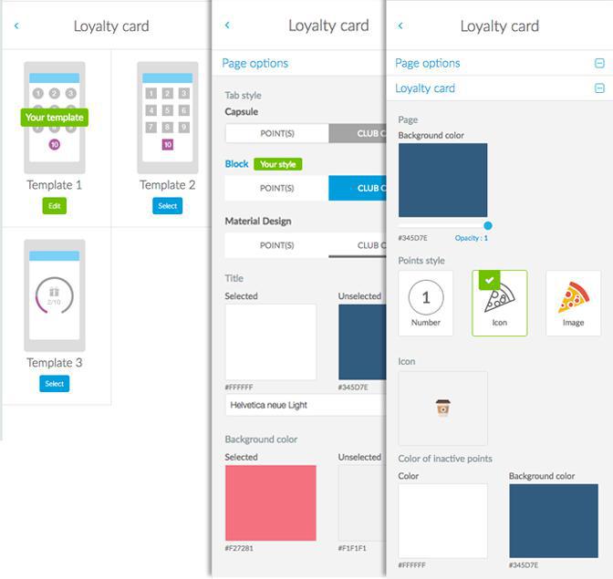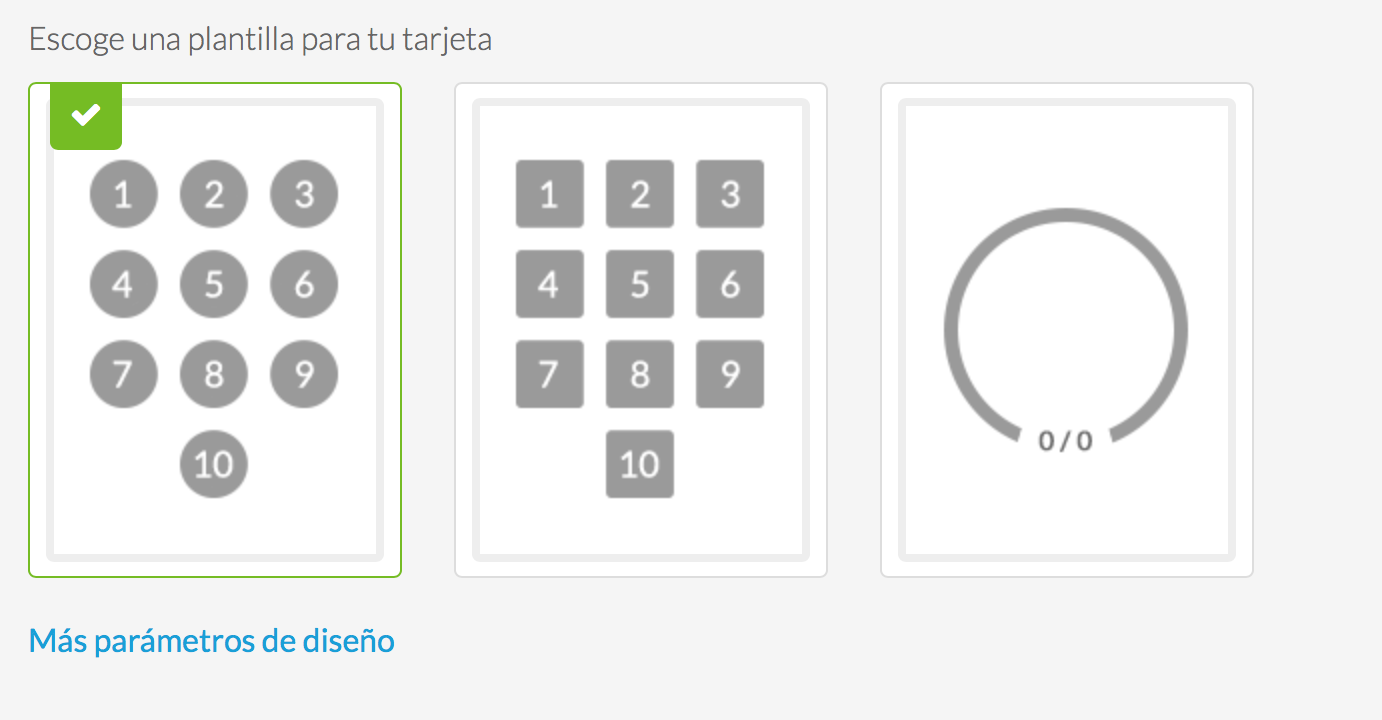 Como en gran parte de las funcionalidades que te proponemos, casi siempre tienes la posibilidad de escoger entre varias plantillas. En este caso, para la Tarjeta de Fidelidad, te presentamos 3 nuevas plantillas.