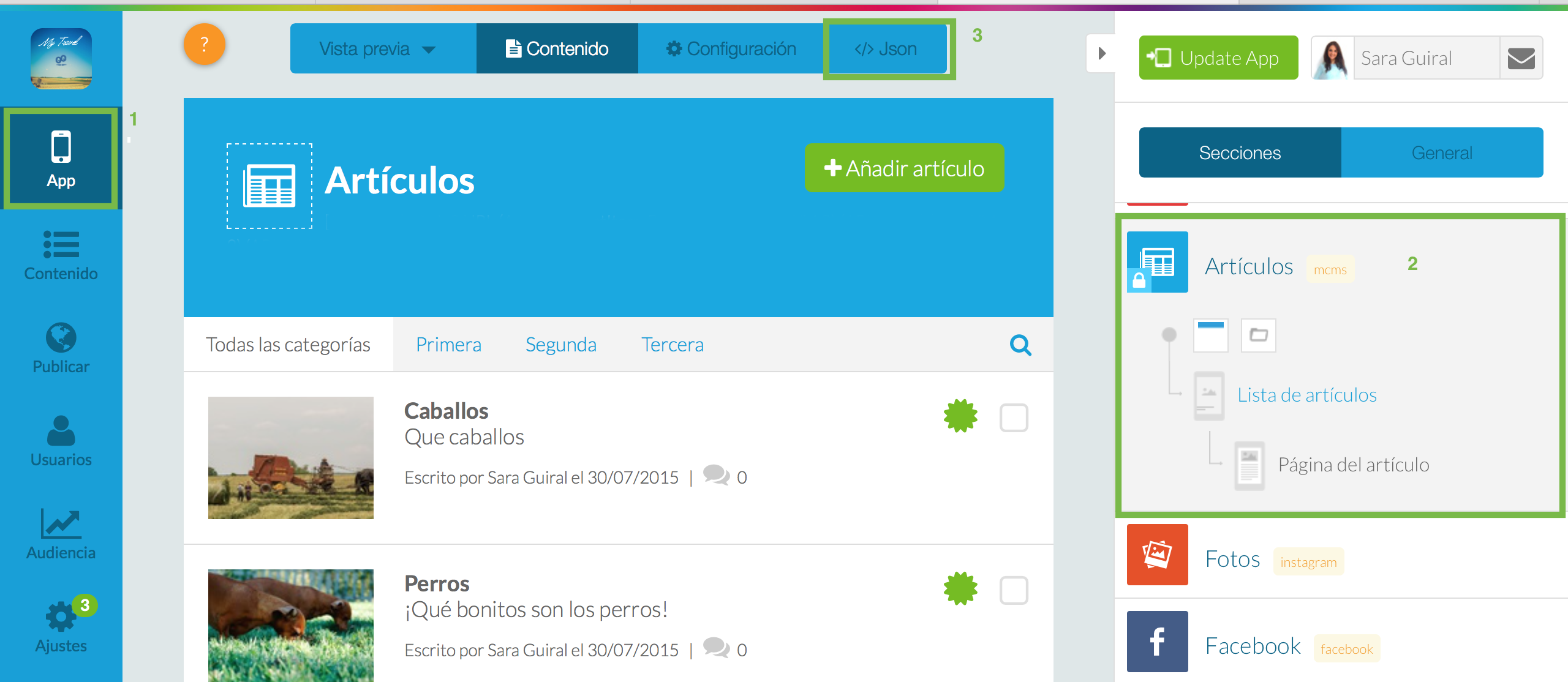 P.D: Para añadir iconos personalizados en todas las secciones de tu app tendrás que repetir el proceso dentro del escritorio Json de cada una de éstas.