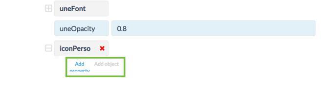 El primer paso es hacer click en "Add Object" y escribir "iconPerso" dentro de la pestaña pop up que aparecerá. La página se refrescará y ahora deberías poder ver el objeto que acabas de añadir dentro del campo gris, perfectamente alineado, con el item que estaba previamente en la lista.
