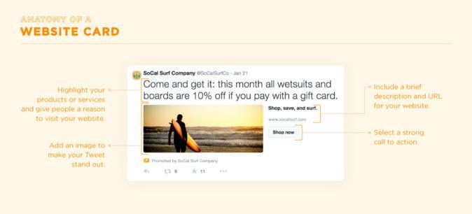 Esto es, una vez más, específicamente para las tarjetas de los sitios web y las aplicaciones que se pueden personalizar con varias llamadas a la acción (leer más, comprar ahora, etc. ). Las tarjetas de aplicaciones en particular, pueden ser una gran oportunidad para volver a contratar a sus usuarios con llamadas a la acción como: abrir, jugar, comprar, conectar, etc. Por supuesto, deben trabajar con su comunicación en Twitterl! Sea específico, teniendo en cuenta lo que usted quiere que su usuario haga cuando haga clic en su Tweet.
