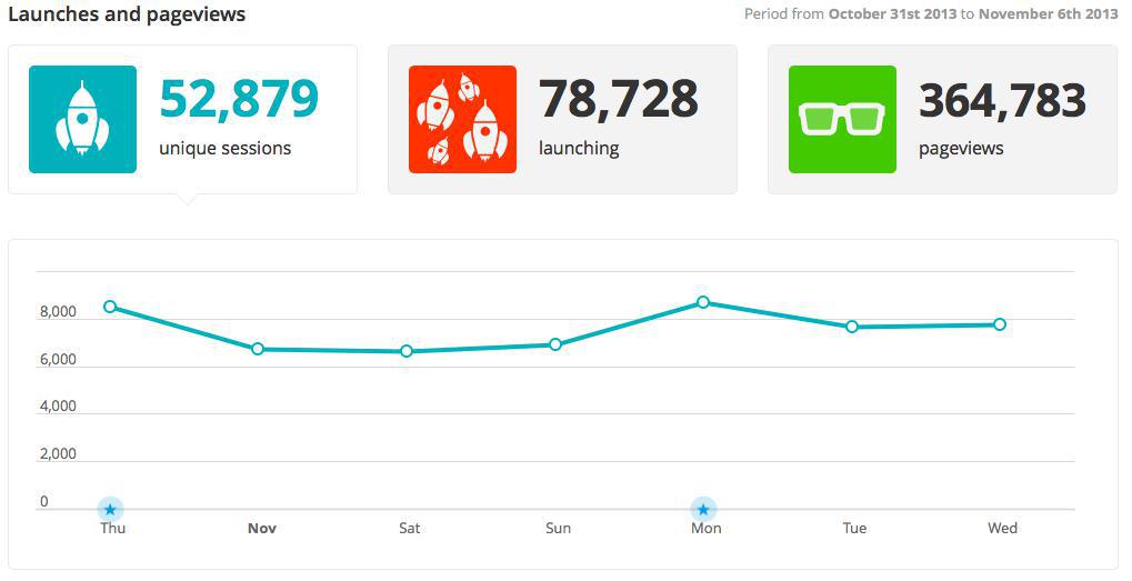 Se cuenta una puesta en marcha cada vez que un usuario inicia tu aplicación, incluso si ésta se activa en multi-tarea. Podemos decir que esta estadística es el número total de efectivos de las sesiones en tu aplicación.