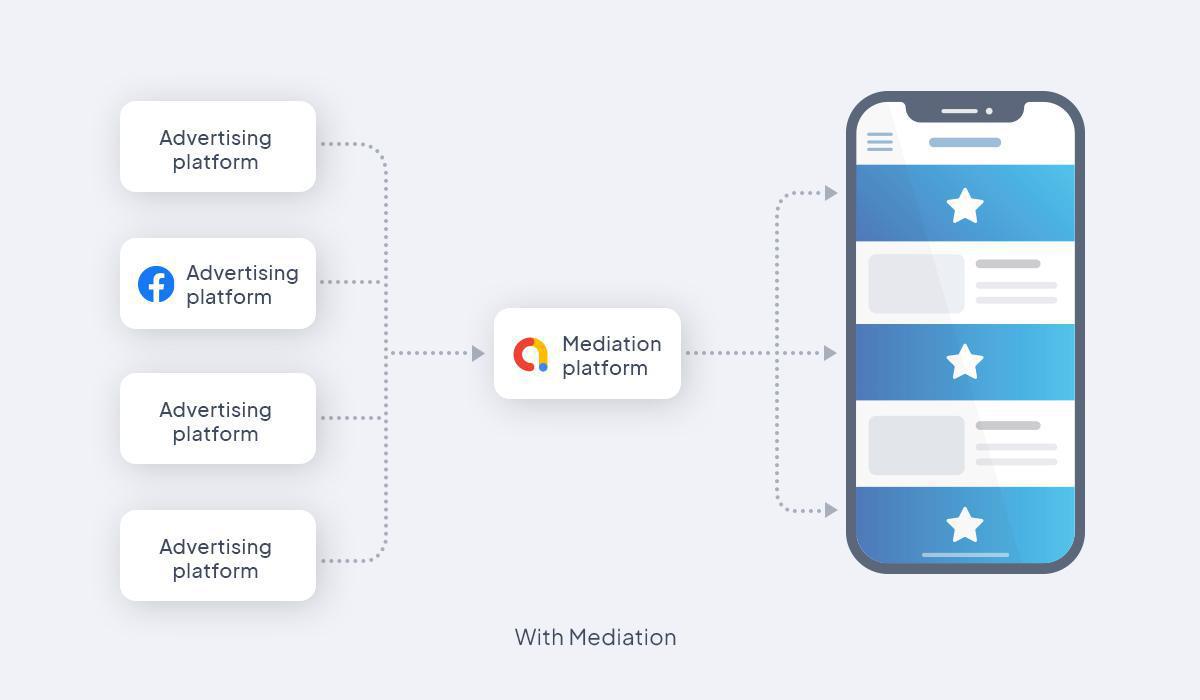 Con Admob mediation, el proceso es mucho más sencillo. De hecho, la mediación es una función de AdMob que te ayuda a administrar todas las fuentes de anuncios que utilizas para publicar anuncios en tus aplicaciones en un solo lugar. Con la mediación, puedes enviar solicitudes de anuncios entrantes a múltiples fuentes de anuncios y asegurarte de encontrar las mejores fuentes de anuncios disponibles para satisfacer las solicitudes.