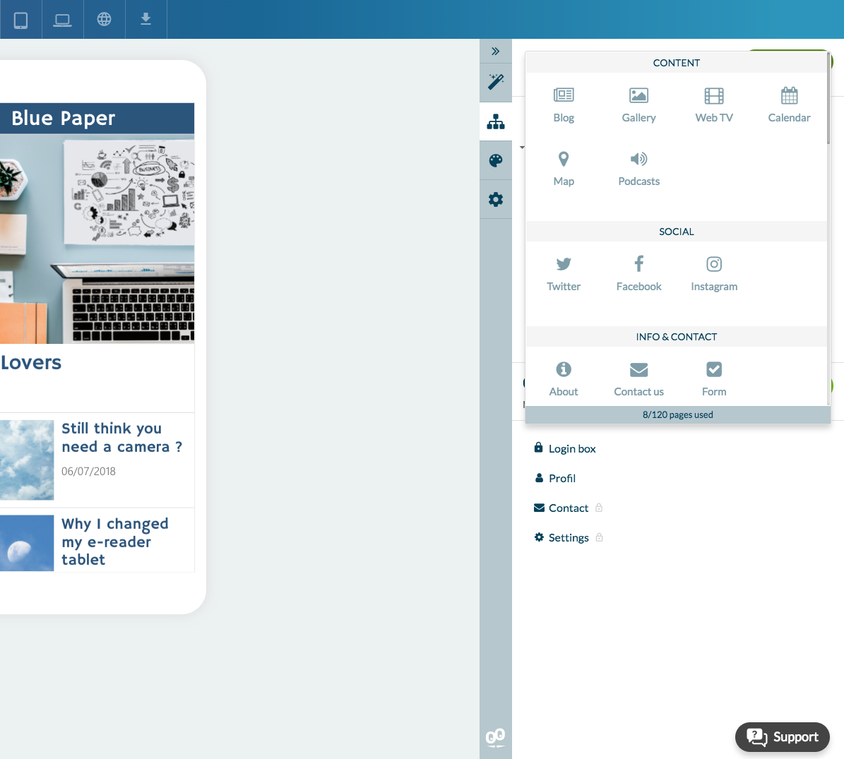 - Las Páginas de contenido: te permiten crear tu contenido gracias a nuestro CMS.