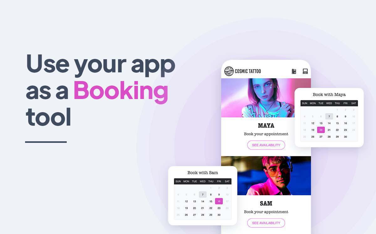 Puedes añadir varias secciones de citas en tu app y así gestionar varios calendarios. Esta opción es perfecta si ofreces varios tipos de servicios o si utilizas tu app como directorio de proveedores por ejemplo.