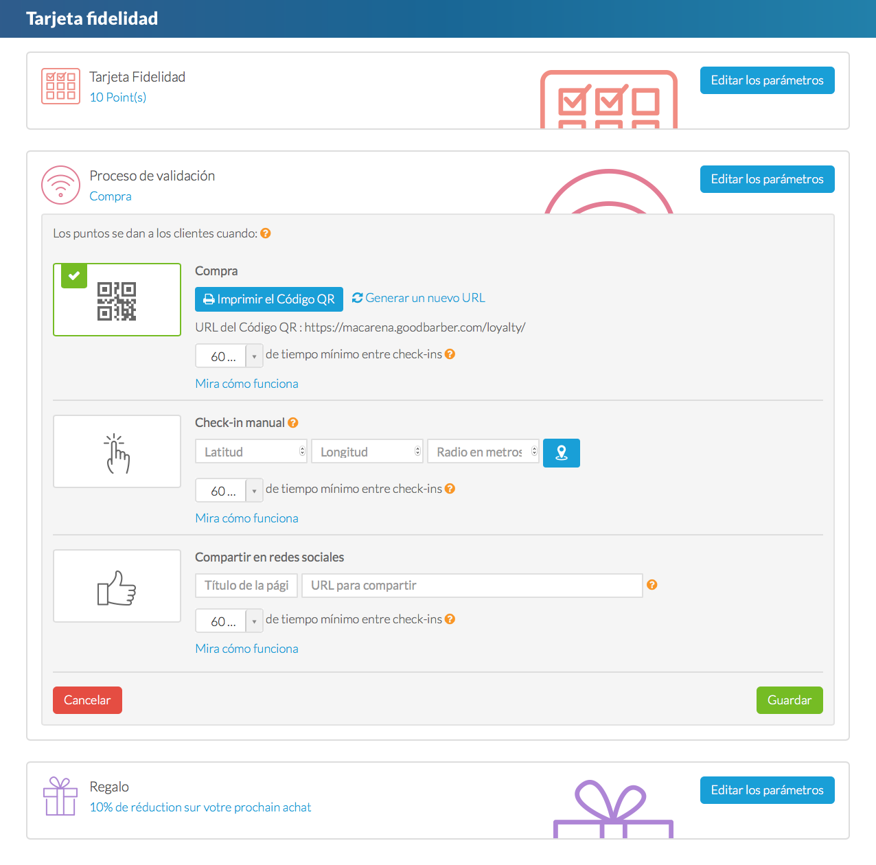 Hemos añadido nuevas medidas de seguridad para la validación de puntos en la tarjeta de fidelidad, a través del código QR. Ahora es posible destruir el código QR y remplazarlo por uno nuevo.