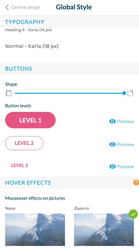 Desde el menú Estilo global, podrás cambiar el radio del botón.