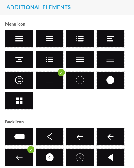 Es en los detalles que reside la belleza de un diseño. Style Global reúne al mismo sitio las selecciones posibles para el icono del menú y para el del botón volver.