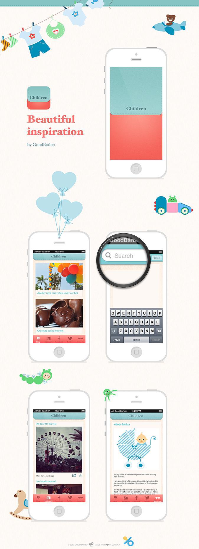 Children es uno de nuestros más de 50 temas disponibles en tu back end de GoodBarber. Utilízalo como un punto de inicio para crear tu Beautiful App.