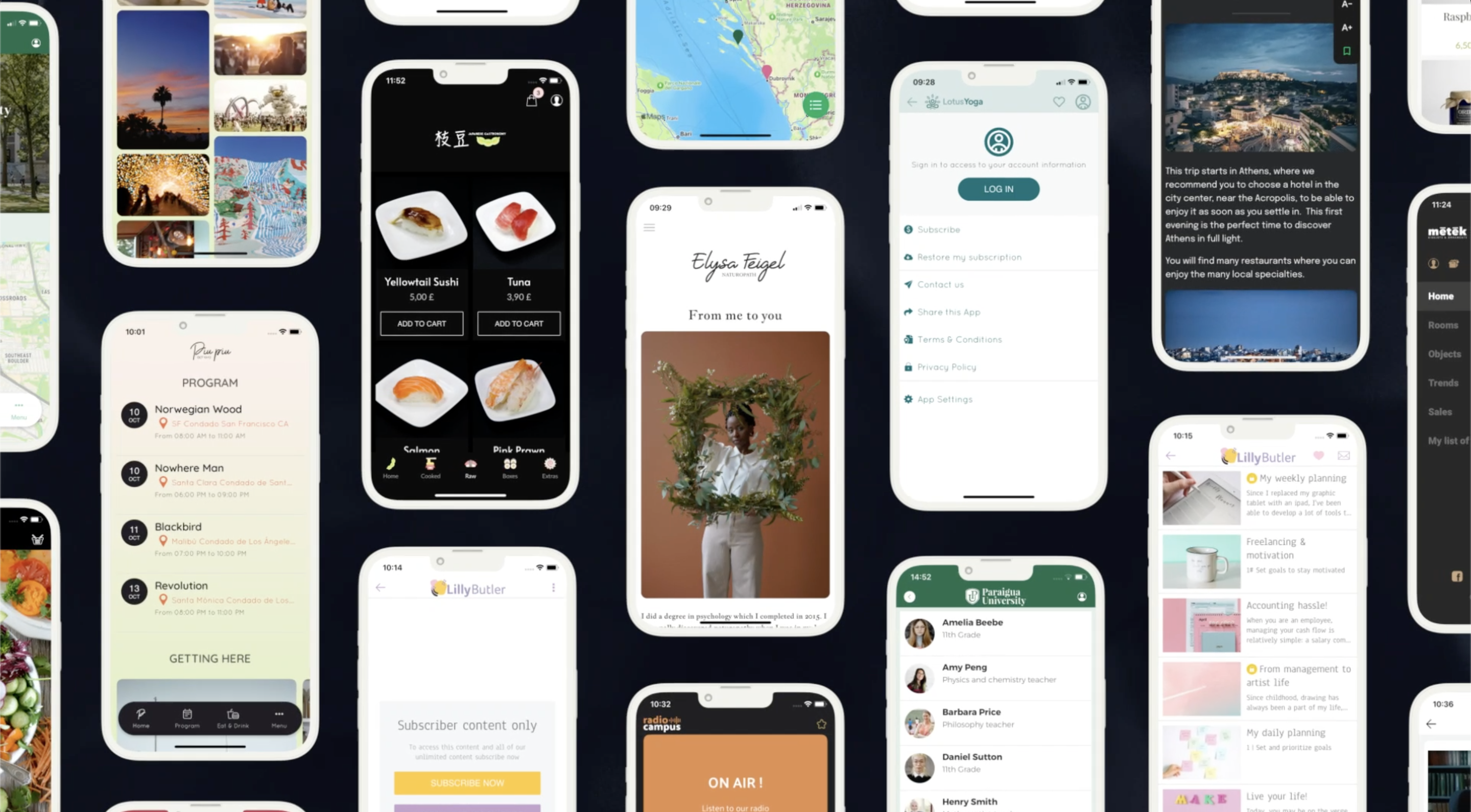 Ahora he terminado mi diseño, pero finalmente no me gusta esta plantilla y quiero cambiarla. Con un solo clic, puedo cambiar a otra plantilla más inmersiva con una imagen a pantalla completa. Y esta es la fortaleza de un producto integrado como GoodBarber, todas las configuraciones que he elegido se transfieren automáticamente al nuevo diseño.