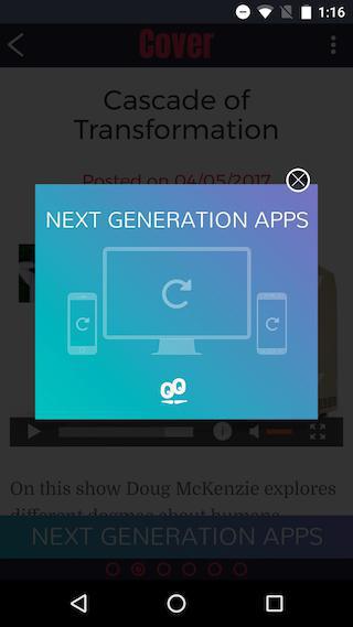 La visualización del intersticial respeta las preconizaciones de Google . No es 100% obstructivo para no penalizar la referencia de tu Progressive Web App. El intersticial aparece durante una transición entre una vista lista y una vista detalle, o entre la Home y una vista detalle. El usuario puede cerrar manualmente el intersticial. Si no lo hace, se cierra de manera automática después de 15 segundos.