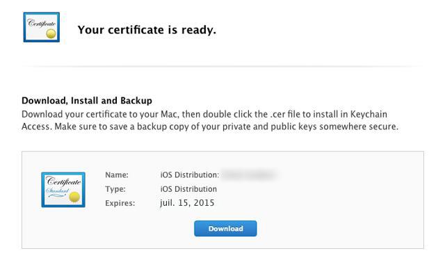 Una vez ya hayas enviado tu archivo CSR, tienes que completar el proceso y finalmente bajarte el ios_distribution.cer. El paso final es subirlo en tu Keychain Access de tu backend.