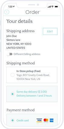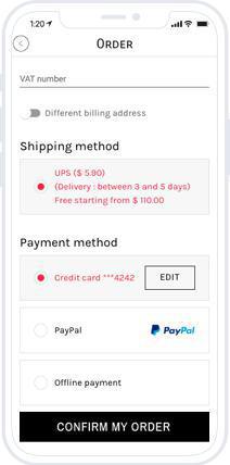 Algunos productos se compran online de forma periódica. En este caso, los compradores quieren ir al grano y no perder tiempo armando un nuevo carrito. Para una tienda de comestibles, por ejemplo, es común que compre regularmente los mismos productos. Al ofrecer la opción "Comprar de nuevo ", haces que el proceso de compra sea más fluido y, por lo tanto, aumenta las tasas de conversión. Es esencial en una aplicación Shopping garantizar que el proceso de pago sea lo más fácil posible. Tus clientes que quieran retener a sus compradores, o que ya tengan una base de clientes habitual, estarán encantados con esta opción que aumenta considerablemente la satisfacción del usuario.
