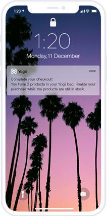El objetivo aquí es aumentar las conversiones. La opción "Popup de recordatorio de carrito " consiste en una ventana emergente, con todos los artículos en el carrito actual, que se abre tan pronto como el usuario abre la aplicación. Pueden agregar artículos o pasar a la caja de inmediato. La función "Pedido abandonado " te permite enviar un mensaje (correo electrónico o push) directamente al usuario para recordarle que tiene artículos pendientes en su carrito. Así, es posible obtener estadísticas sobre las ventas realizadas después de estas acciones. Sabemos que más del 70% de los carritos de la compra nunca serán validados por los compradores online. Por lo tanto, es esencial que tus clientes tengan una forma de influir positivamente en esta estadística, de lo contrario, corren el riesgo de decepcionarse con tu aplicación Shopping.