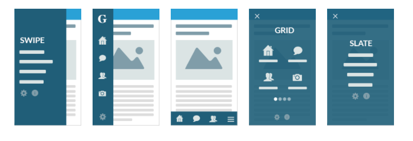 Por modo de navegación: hay 5 modos de navegación en GoodBarber. Puedes decidir crear una aplicación mediante el modo de navegación para mostrar la modularidad de la plataforma que estás utilizando. El cliente primero elegirá el modo de navegación y la arquitectura de la aplicación, lo que te dará una buena idea de lo que puedes proporcionar.