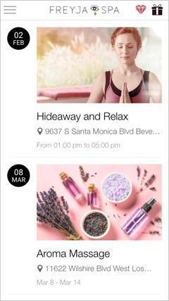 Para mostrar un calendario, los próximos eventos y las notificaciones push, es la combinación ganadora. O bien toma el contenido de una fuente que ya has configurado (es decir, el calendario de Google, el calendario de Facebook, etc.), o los eventos de entrada manualmente específicos de los usuarios de tu aplicación. Con varias plantillas diferentes creadas específicamente para la visualización de eventos para elegir, tienes muchas opciones excelentes para proporcionar a los usuarios, como un enlace para las instrucciones, un botón para comprar boletos, posibilidades de intercambio y su información de contacto. Tus clientes seguramente apreciarán la administración de esta sección . Podrán crear tus propios eventos y publicarlos rápidamente.